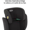 - Cumple con las normativas i-Size y R129, que garantizan un nivel de seguridad mejorado, específicamente en lo que respecta a la protección de los impactos laterales, lo que protege la cabeza y el cuello del niño en caso de colisión.