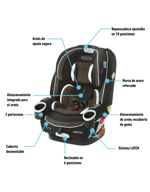 El asiento 4 en 1 que crece con tu hijo para que disfrutes de 10 años de uso ahora viene con 3 características adicionales: tela removible en 60 seg sin desinstalar, un bloqueo de cinturón integrado para una fácil instalación y un sistema de almacenamiento del arnés de goma para ayudarte a colocar y sacar al bebé sin complicaciones.