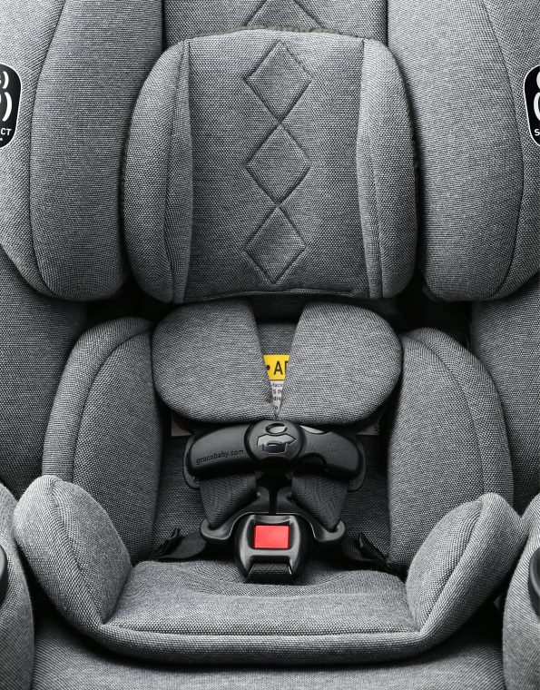 Este asiento 4 en 1 incluye innovadoras tecnologías y sistemas, como la barra antirrebote, el sistema Extend2Fit® que permite que tu hijo viaje mirando hacia atrás por más tiempo, el botón LATCH InRight™, con un clic audible, y sistema de arnés Simply Safe Adjust ™.