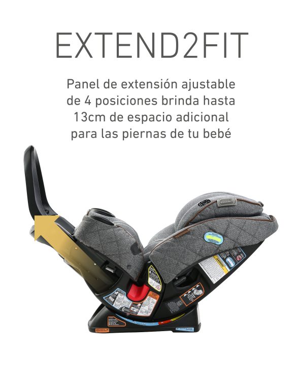 • El panel de extensión ajustable de 4 posiciones Extend2Fit® brinda hasta 13 cm de espacio adicional para las piernas, lo que permite que tu hijo viaje de manera segura mirando hacia atrás por más tiempo.