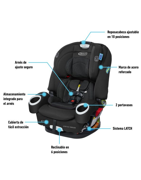 - Tecnología SnugLock®, que incluye palanca para instalar el asiento en menos de un minuto.