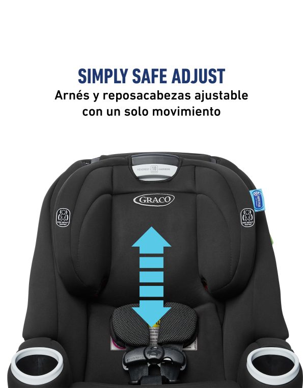 - Sistema de arnés Simply Safe Adjust ™ que permite ajustar la altura del arnés y reposacabezas en un solo movimiento, para garantizar que tu hijo esté siempre correctamente asegurado.