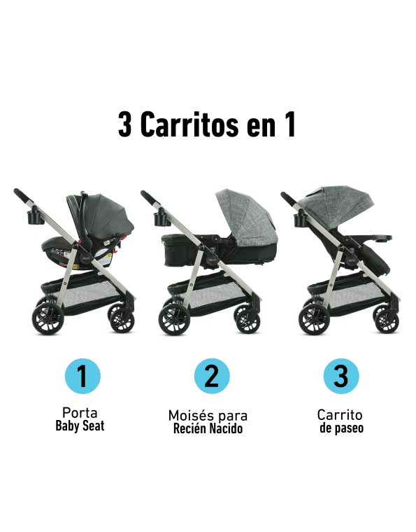 Con el carrito® Modes™ Trio, obtienes 3 carrito en 1 con porta-baby seat, moisés para recién nacido y carrito de paseo, más el asiento infantil para automóvil Graco® SnugRide® 35 Lite, por lo que estarás listo para paseos y paseos cómodos desde el primer día.