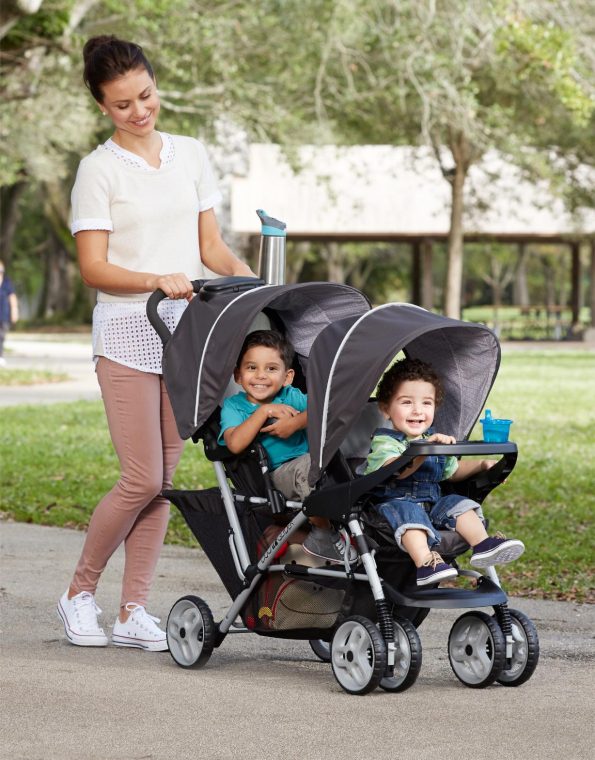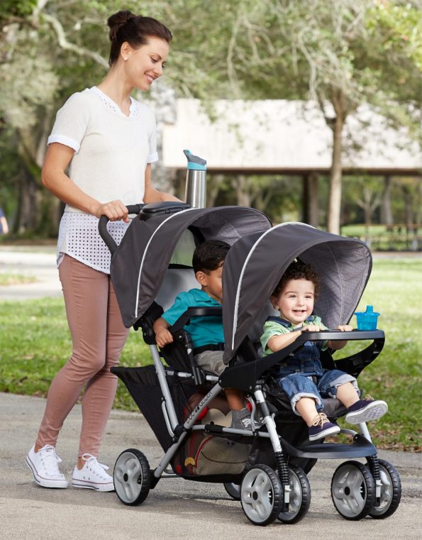 El Graco Duoglider es el carrito doble perfecto para paseos cómodos con dos niños. Su diseño de asientos en estilo estadio eleva el asiento trasero para una mejor vista.