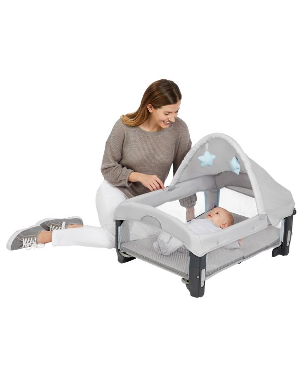 La cuna corralito Day2Dream Bassinet ofrece 6 formas de uso. Posee un moisés elevado y extraíble, que puede transportarse a la habitación en que estés y regularse en dos alturas. El corralito bien espacioso es ideal para que el niño pequeño pueda dormir o jugar.