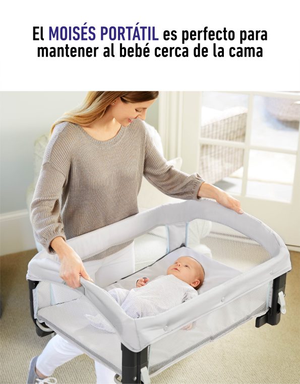 - Etapa 1: El moisés para recién nacido permite colocar al bebé a la altura de tus ojos para que puedas controlarlo durante toda la noche sin tener que levantarte de la cama.