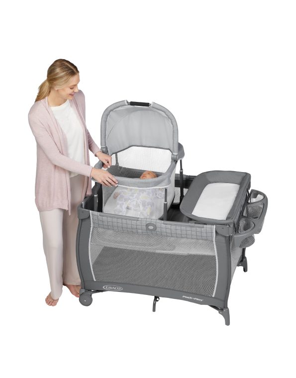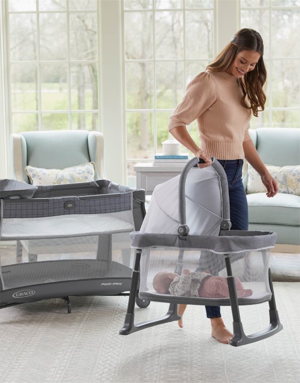 La cuna corralito Day2Dream Bassinet ofrece 6 formas de uso. Posee un moisés elevado y extraíble, que puede transportarse a la habitación en que estés y regularse en dos alturas. El corralito bien espacioso es ideal para que el niño pequeño pueda dormir o jugar.