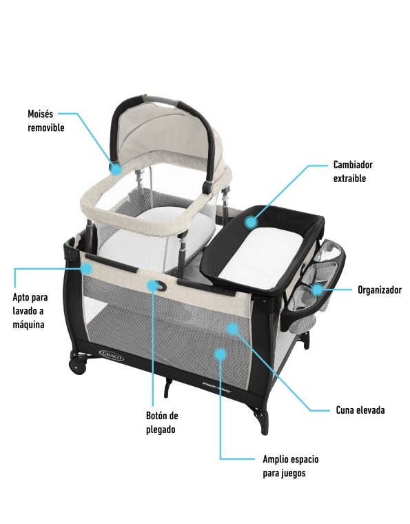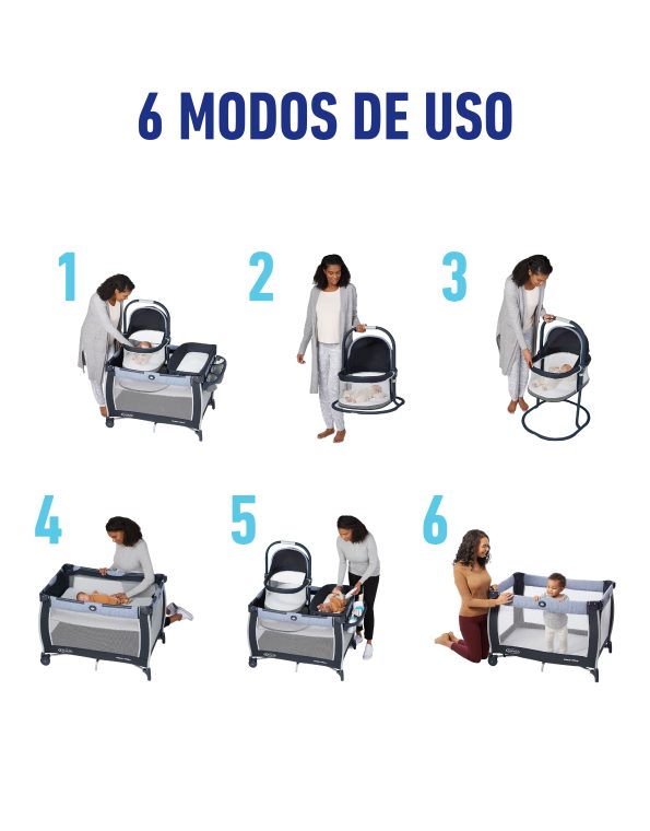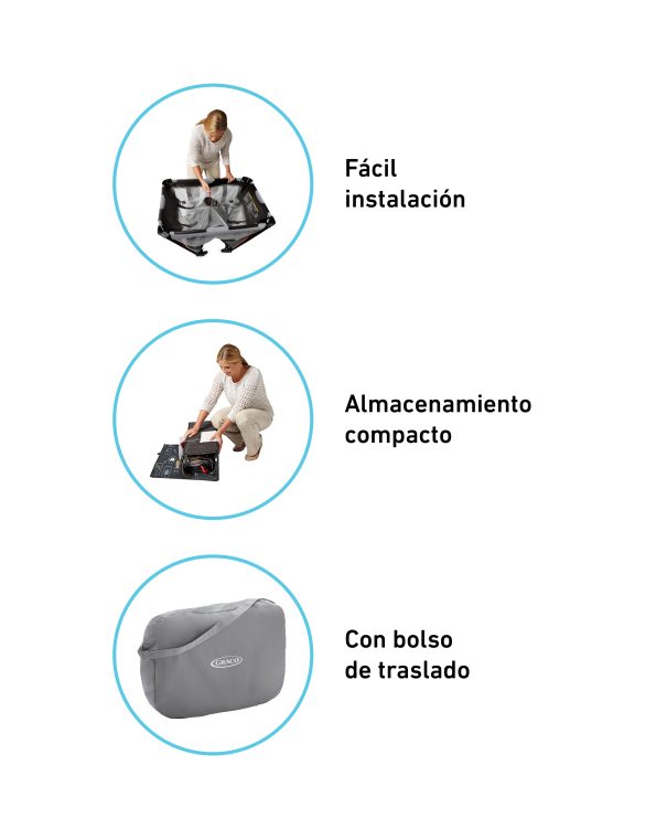 Diseñado para acompañar a tu bebé en cada etapa. Cuenta con un moisés portátil que se puede usar dentro o fuera del corralito, manteniendo a tu pequeño siempre a tu lado. Cuando lo retirás, se convierte fácilmente en una colchoneta para estimulación boca abajo con arco de juguetes, ideal para entretener a tu bebé. Gracias a sus ruedas y al sistema de plegado rápido exclusivo de Graco, podés moverlo y guardarlo sin esfuerzo. Además, viene con una bolsa de transporte para llevar a cualquier lugar.