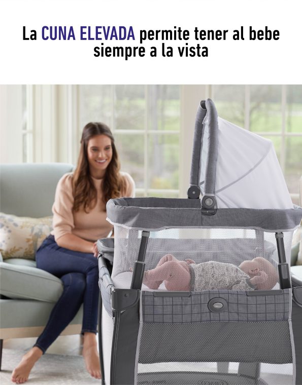 - El moisés portátil elevado coloca al bebé a la altura de tus ojos en el corralito.