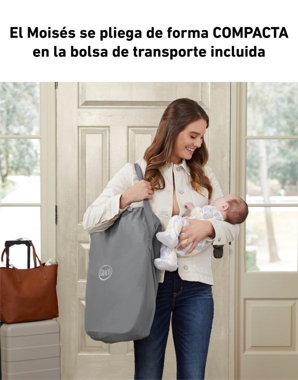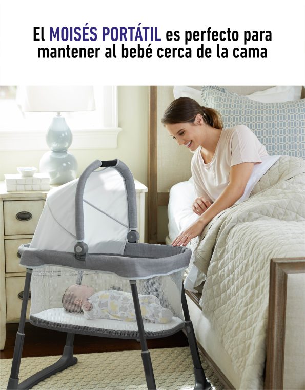 - El moisés portátil se quita del corralito para usarlo junto a la cama en casa o fuera de la casa.