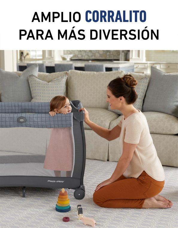 - Transiciones a un corralito espacioso para que los niños pequeños puedan dormir o jugar.