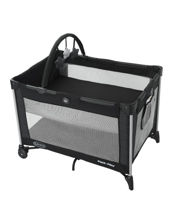 Gracias al sistema de plegado con botón Graco y sus 2 ruedas, se traslada y guarda fácilmente. Además, trae barra de juguetes y bolso de transporte para llevarlo a donde vayas.