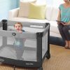 La cuna corralito colecho 4 en 1 Graco® My View ofrece cuatro formas diferentes de uso, además crece con el bebé y se pliega para viajar. Para los recién nacidos, un moisés elevado junto a la cama coloca perfectamente al bebé a la altura de los ojos para los controles nocturnos. Para los bebés, el moisés desciende hasta el nivel de la cuna y se puede quitar para en la cama o en el piso, en cualquier lugar de la casa.