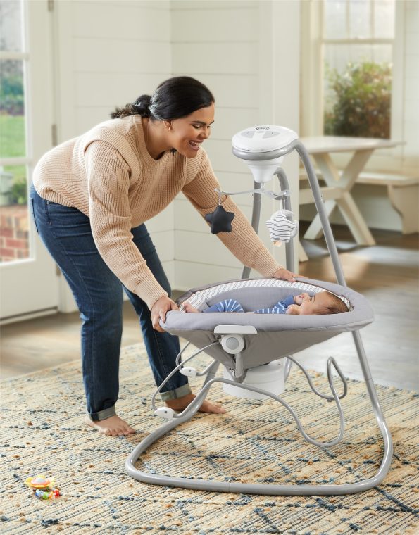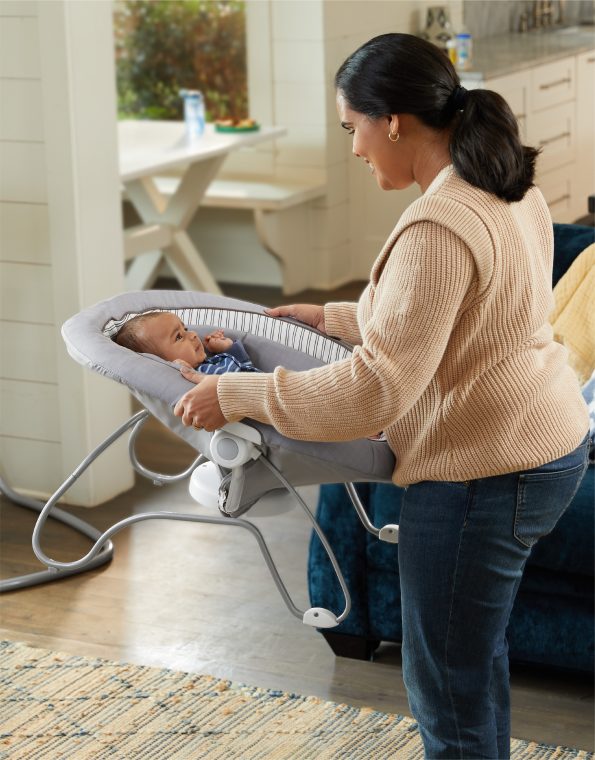 La hamaquita Soothe My Way™ para bebé con balancín extraíble cuenta con 8 movimientos relajantes en 2 direcciones, para 16 formas de calmar al bebé. El asiento 2 en 1 de la hamaquita se puede utilizar como bouncer en toda la casa.