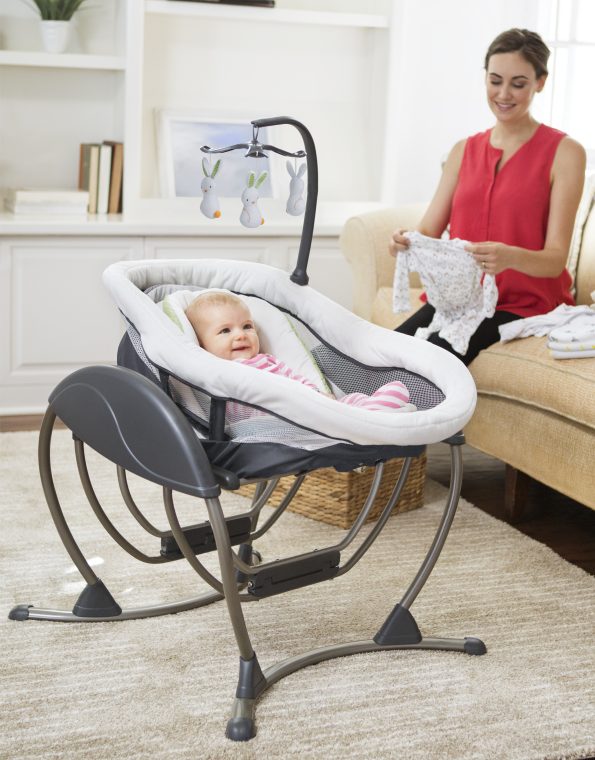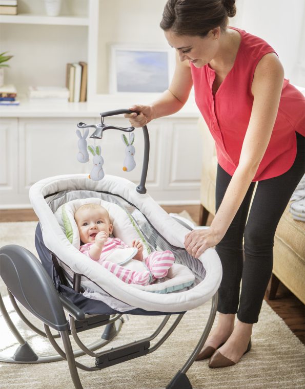 La hamaquita Soothe My Way™ para bebé con balancín extraíble cuenta con 8 movimientos relajantes en 2 direcciones, para 16 formas de calmar al bebé. El asiento 2 en 1 de la hamaquita se puede utilizar como bouncer en toda la casa.