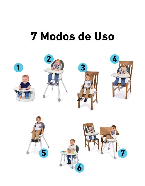 Esta silla para comer 7 en 1 se adapta a todas las etapas de crecimiento de tu hijo para que disfrute más de todas las comidas. Desde que comienza con la alimentación complementaria hasta que se incorpora a la mesa familiar en una silla de comedor, incluso permite sentar a 2 niños a la vez para crecer con su familia.