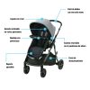 - Asiento reclinable de varias posiciones y el soporte ajustable para pies hacen que su pequeño viaje mas comodo.