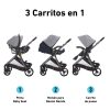 - 3 carritos en 1: el primero es un portababyseat, ademas de ser un moises para recien nacidos y un carrito de paseo.
