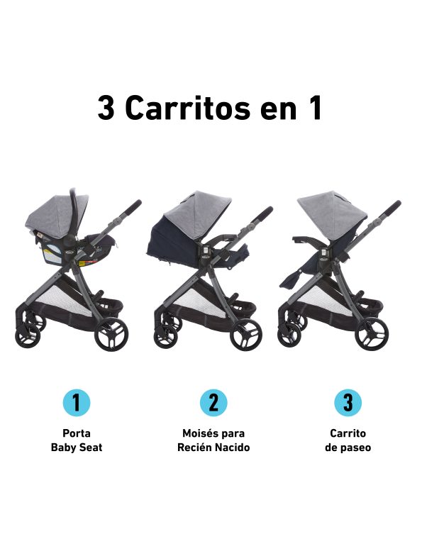 Con el carrito® Modes™ Trio, obtienes 3 carrito en 1 con porta-baby seat, moisés para recién nacido y carrito de paseo, más el asiento infantil para automóvil Graco® SnugRide® 35 Lite, por lo que estarás listo para paseos y paseos cómodos desde el primer día.