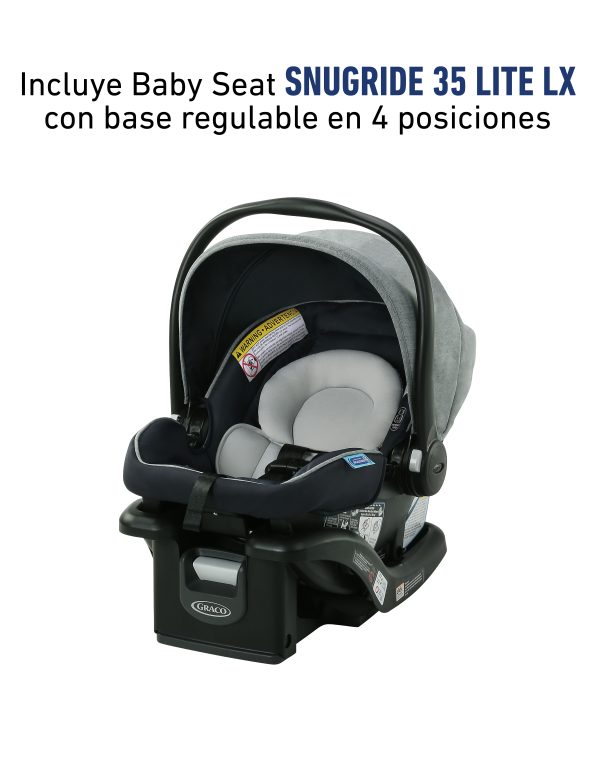 - Incluye el baby seat para automovil SnugRide® 35 Lite LX que protege a bebés orientados hacia atrás RN a 16kg y hasta 81cm.