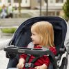 La bandeja para padres con 2 portavasos y un compartimento de almacenamiento ofrece un lugar para guardar las llaves y las bebidas. Bandeja infantil extraíble con portavasos para guardar las bebidas y snacks de tu hijo mientras paseas. Rueda giratoria delantera con bloqueo para una mejor maniobrabilidad